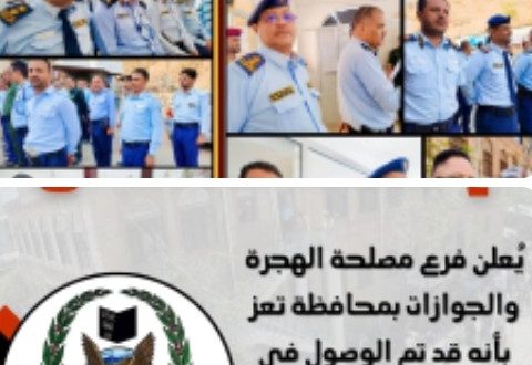 بعد فترة توقف مؤقتة بسبب أزمة الدفاتر، أعلنت مصلحة الجوازات بمحافظة تعز استئناف طباعة جوازات السفر للمواطنين، مؤكدة أن العمل عاد بوتيرة عالية، وأن الطباعة وصلت حاليًا إلى معاملات المواطنين حتى نهاية شهر أبريل 2025م.