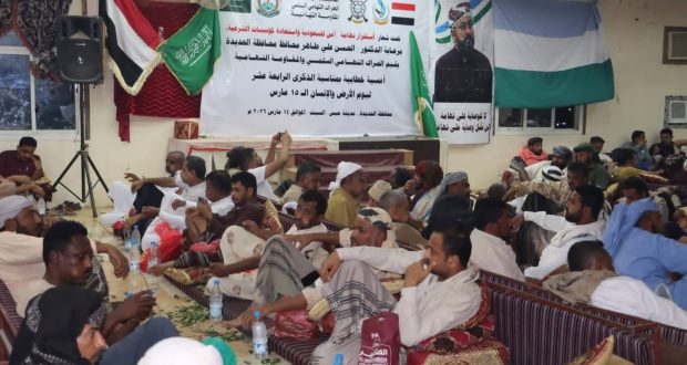 بمشاركة شعبية ورسمية واسعة، أحيا الحراك التهامي السلمي والمقاومة التهامية، مساء السبت في مدينة حيس بمحافظة الحديدة، الأمسية الخطابية الكبرى بمناسبة الذكرى الرابعة عشر لـ “يوم الأرض والإنسان” (15 مارس)، وذلك برعاية الدكتور الحسن علي طاهر، محافظ المحافظة.